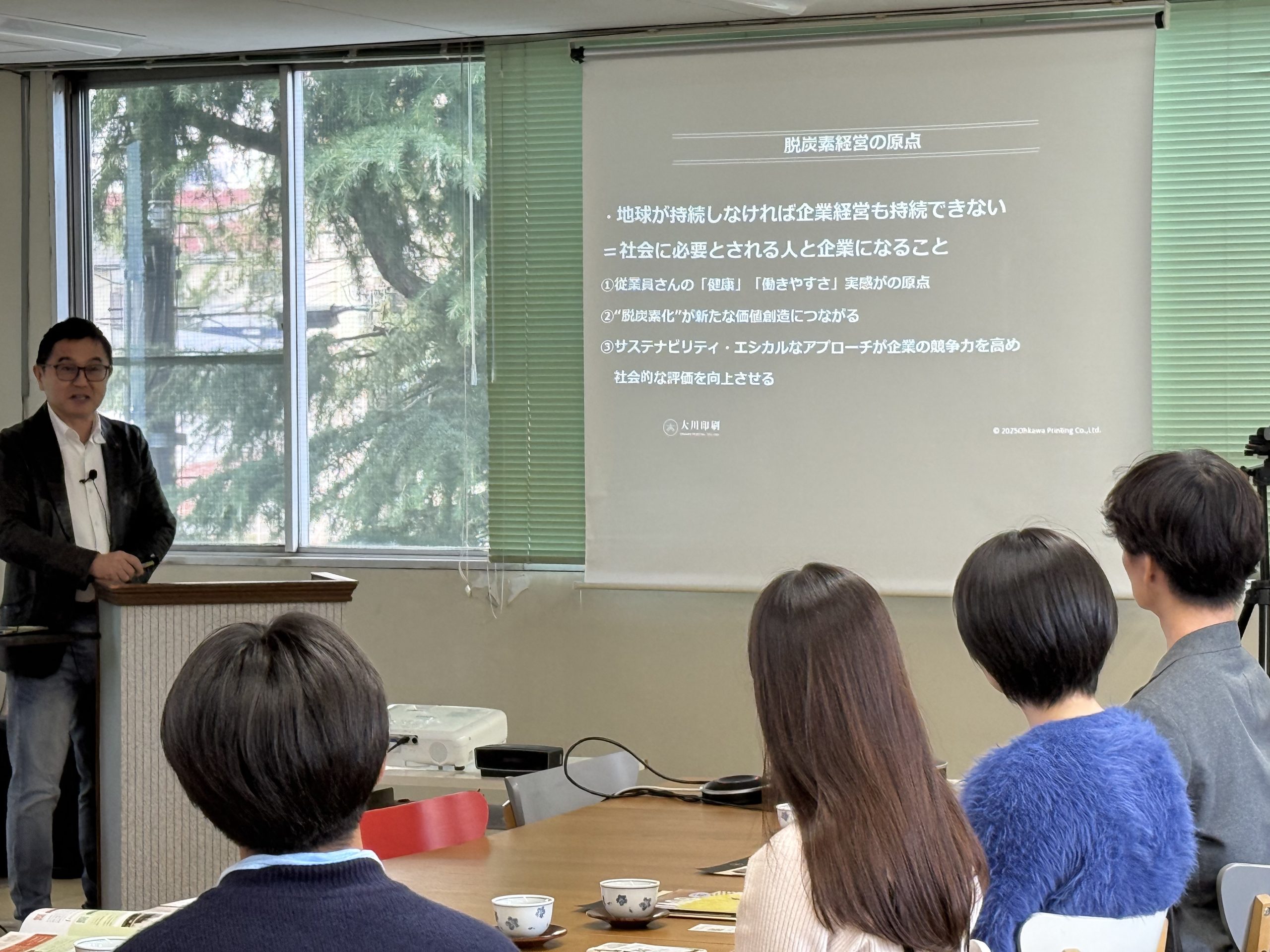 大川印刷がかかえている環境課題を、学生さんの新鮮なアイデアをいただき、今後の取り組みの参考にさせていただきたく思っています。