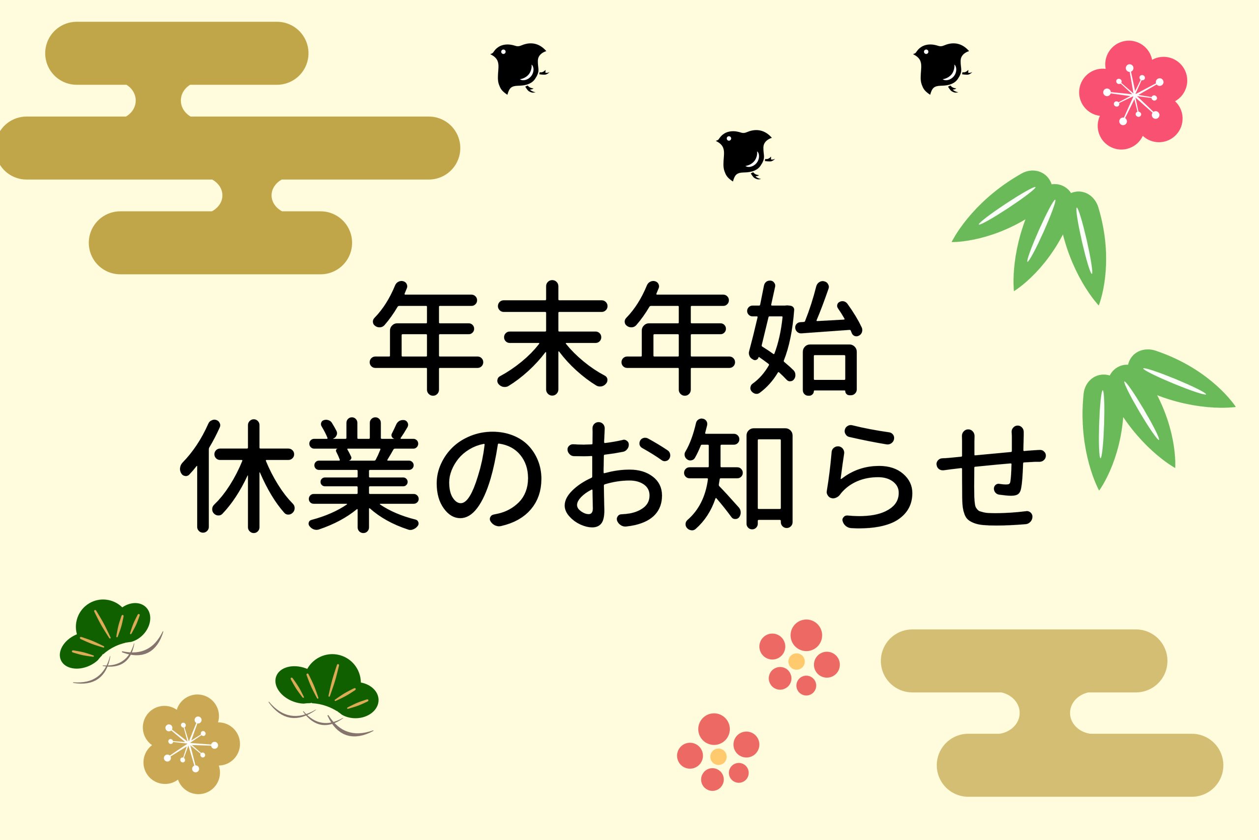 平素は、格別のご愛顧を賜り厚く御礼申し上げます。誠に勝手ながら、弊社では下記の期間を年末年始の休業とさせていただきます。ご迷惑をおかけしますが何卒ご了承下さいますよう、宜しくお願い申し上げます。