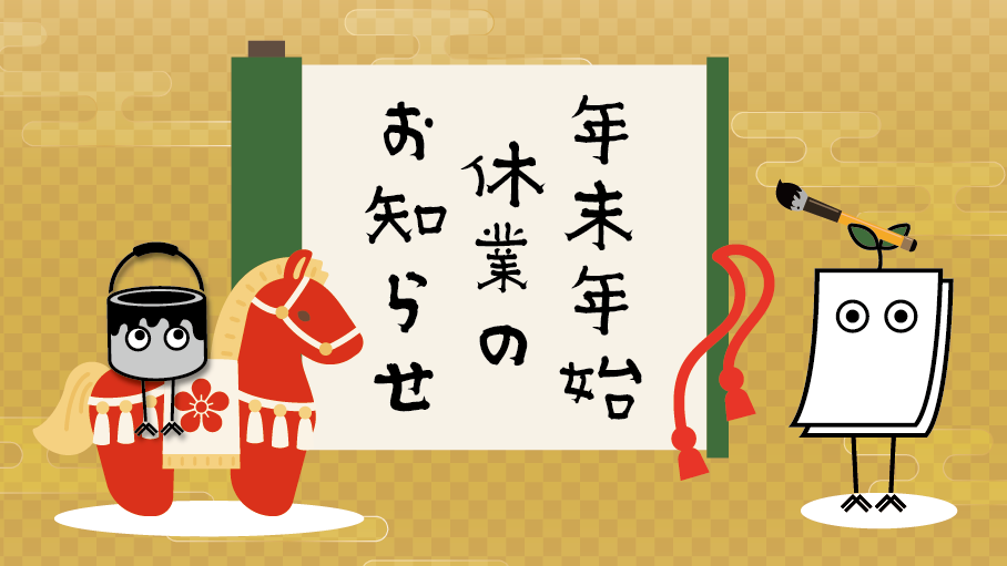 ニュース平素は、格別のご愛顧を賜り厚く御礼申し上げます。誠に勝手ながら、弊社では下記の期間を年末年始の休業とさせていただきます。ご迷惑をおかけしますが何卒ご了承下さいますよう、宜しくお願い申し上げます。