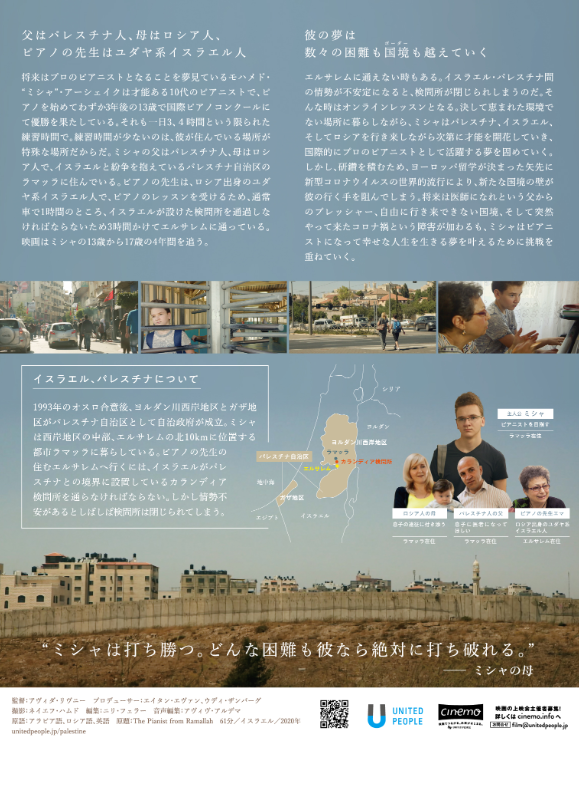 父はパレスチナ人、母はロシア人、ピアノの先生はユダヤ系イスラエル人。青年ミシャのピアニストになる夢は国境を越える!音楽を愛し、夢を追うすべての人に贈る音楽ドキュメンタリーです。