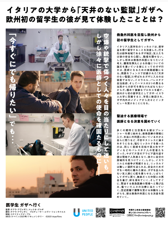救急外科医になる夢を叶えるためにガザ地区に留学したイタリア人医学生の葛藤や成長を描くドキュメンタリーです。勇気あるリッカルドの姿を通じて、ガザの現実を知り、私達にできることを考えていきませんか。