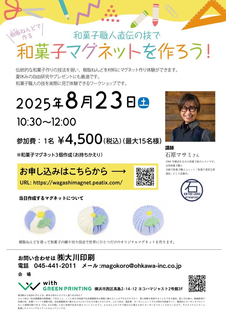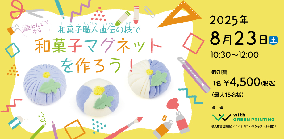 《夏休み企画》和菓子職人の技を実際に見て、和菓子マグネット作りを体験できるワークショップを開催いたします。