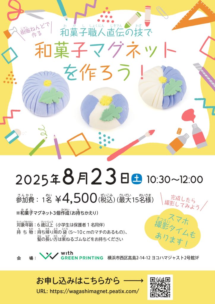 ■参加費:1名 ¥4,500(税込)(最大15名様)※和菓子マグネット3個作成(お持ち帰り)