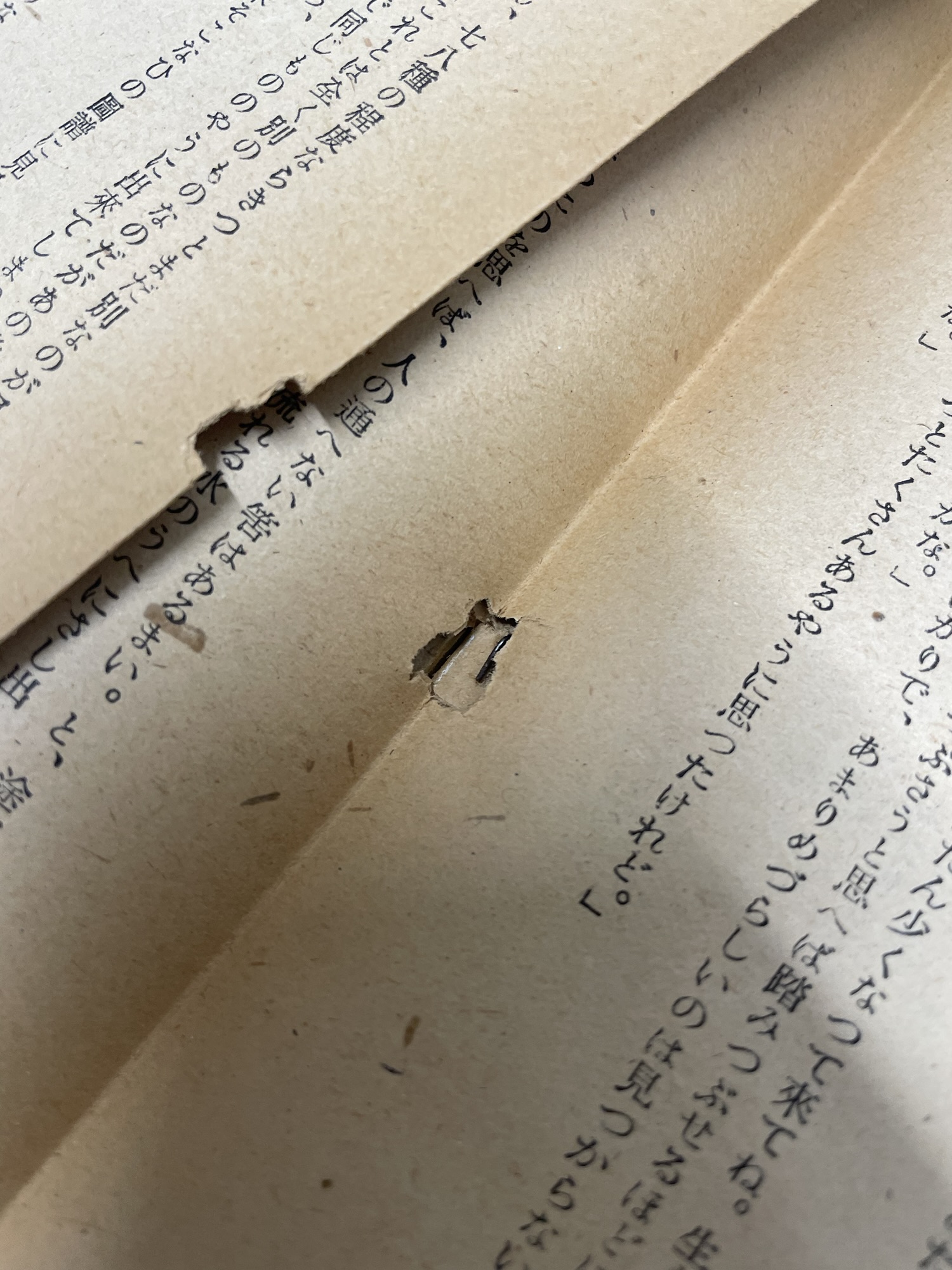 虫喰い 紙は有機物なので虫やカビなどの餌になり、虫に喰われると穴が空きます。ご関心のある方は国立国会図書館で資料の保管等について詳しくまとめているので参考になるかもしれません。