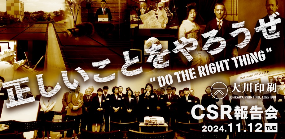 これまでのスローガン「環境印刷で刷ろうぜ」に加える形でミッション「Do The Right Thing 〜正しいことをやろうぜ!」を発表したのは昨年、2024年11月12日に行われたCSR報告会でした。