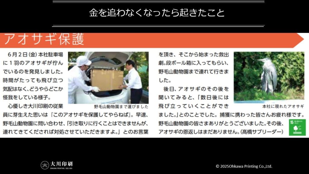 「本当に」と言うところが重要です。印刷会社が数多くある中、なかなかお客様は「本当に」困ることはない、と思い、「本業を通じて社会課題解決を実践するソーシャルプリンディングカンパニー®︎」というパーパスを掲げました。