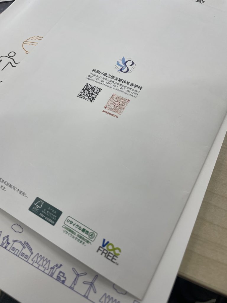 横浜瀬谷高校さんには再エネ100%「風と太陽®︎で刷る印刷」をお選び頂いています。