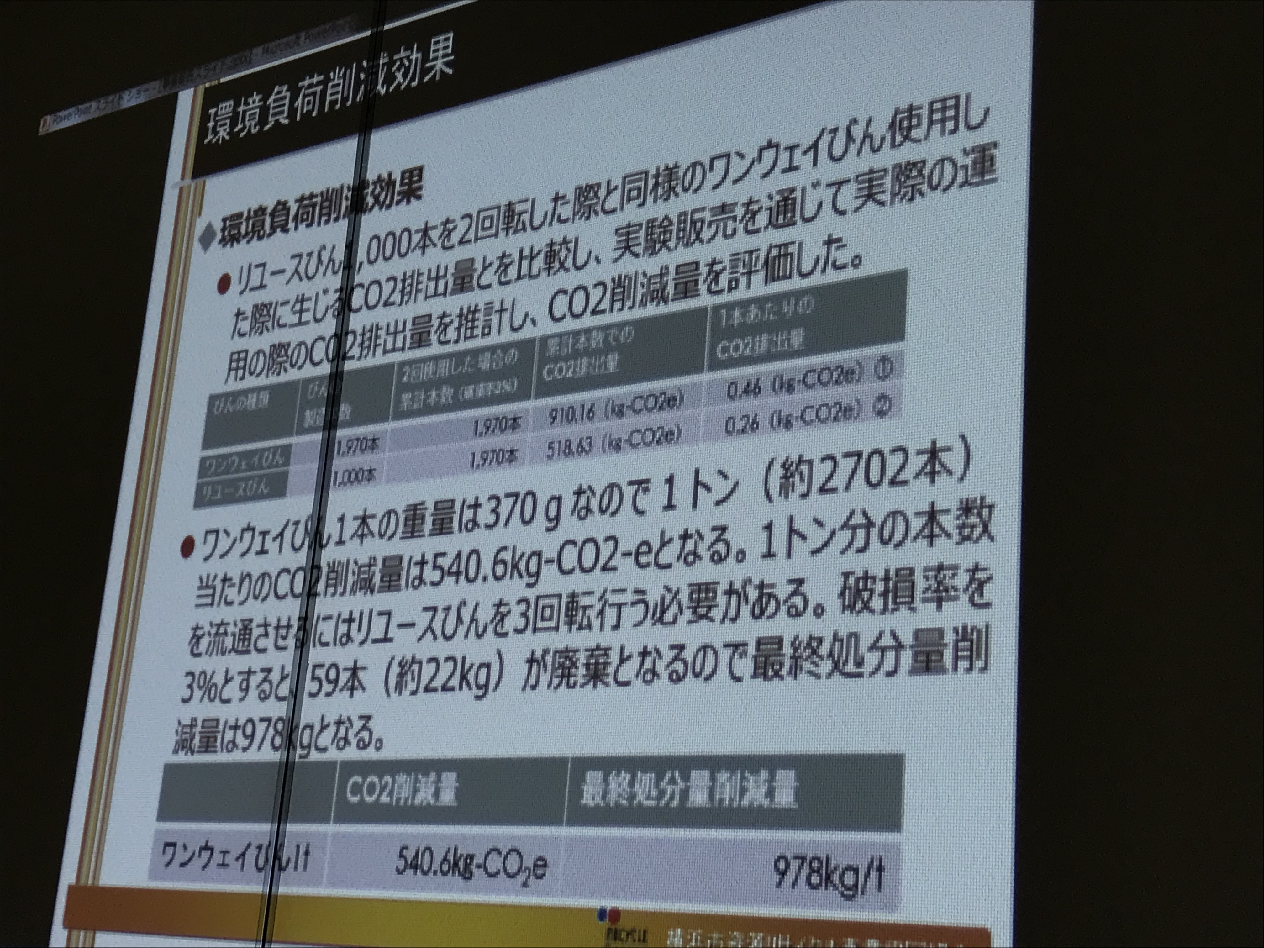 限られた範囲内での取り組みであれば、リユース瓶の活用はCO2削減効果があることが実証実験の結果わかった。