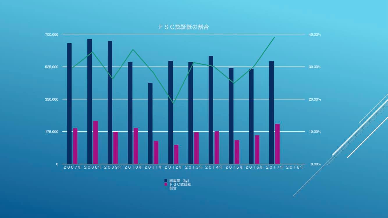 2017年度の認証紙の使用比率が全体の実に39%になり、過去最高となった。