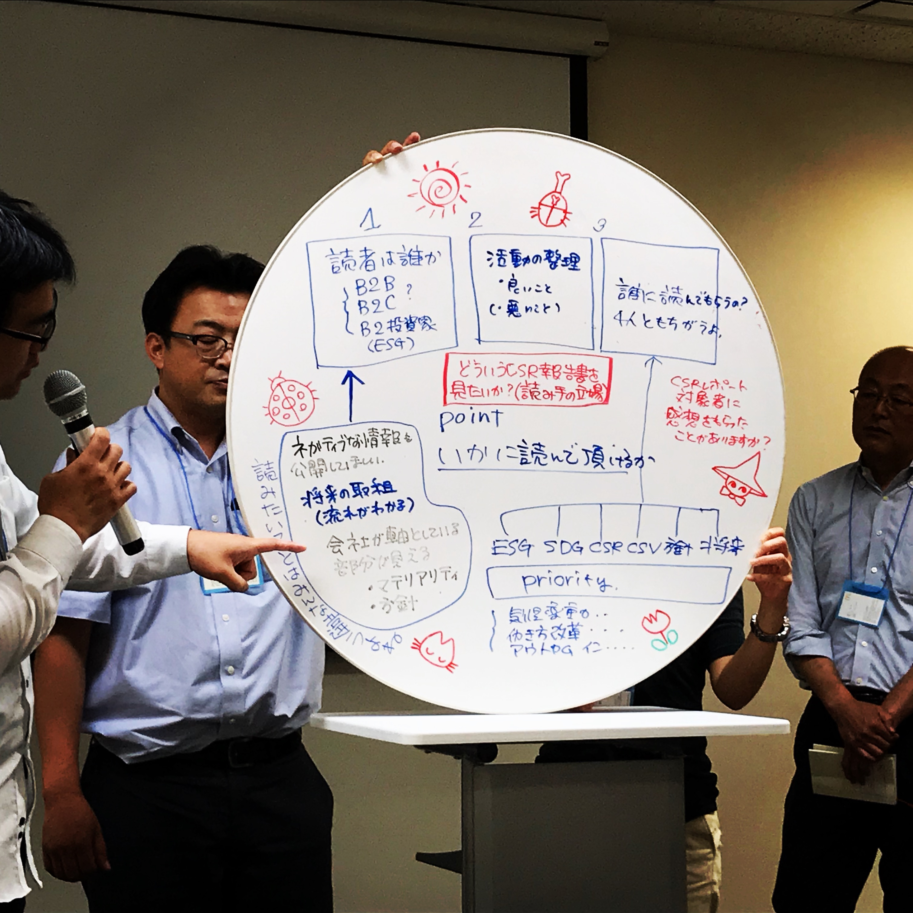 続くワークショップでは「読んでもらえるCSR報告書とは?をテーマにディスカッション
