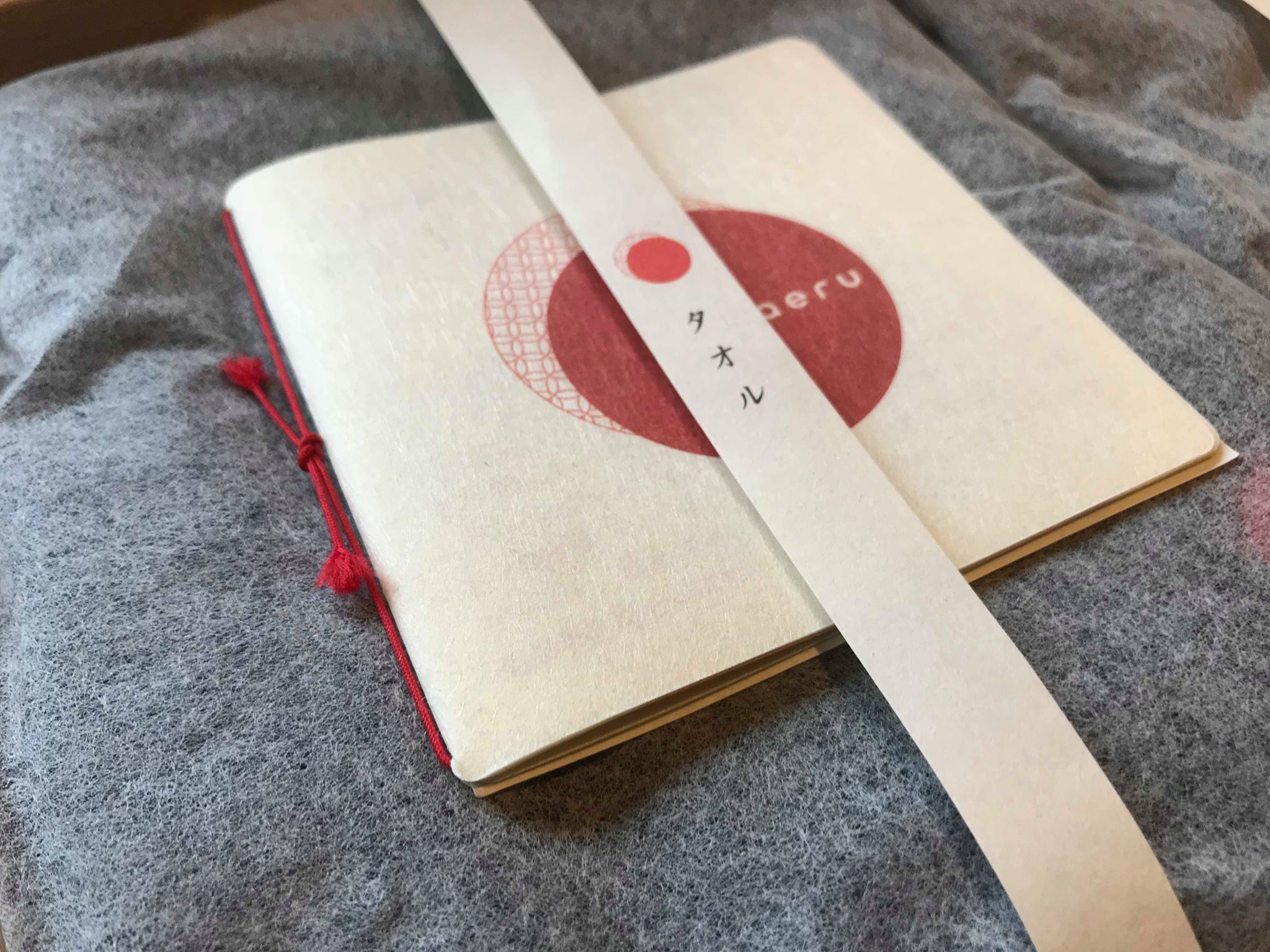 赤い糸の結び方は帯留めの結び方になっており、障がい者の方の作業所での手作業によってここまで美しく仕上げられるまでに至っている。