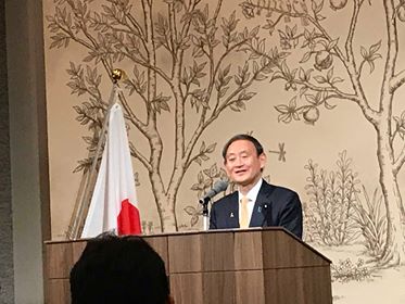 懇親会では菅官房長官が駆けつけてこられた。
