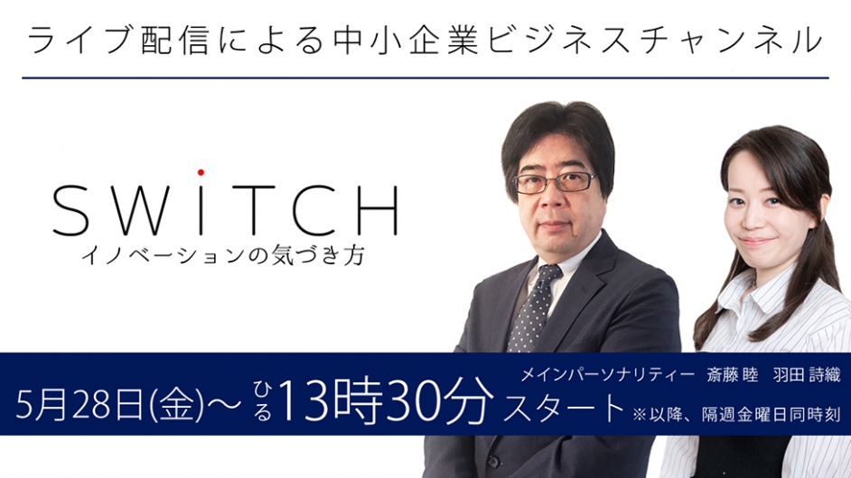 「SWITCH~イノベーションの気づき方~」はコロナ禍で「何かしなければならないけど、何をして良いのかわからない」と感じている中小企業事業者が「ウチだったらこうできるかも」と刺激を受けてブレイクスルーの気づきを感じるビジネスリアリティショーとして、ゲストと初対面となるメインパーソナリティーが台本や筋書きにとらわれず進行するライブ配信番組です。